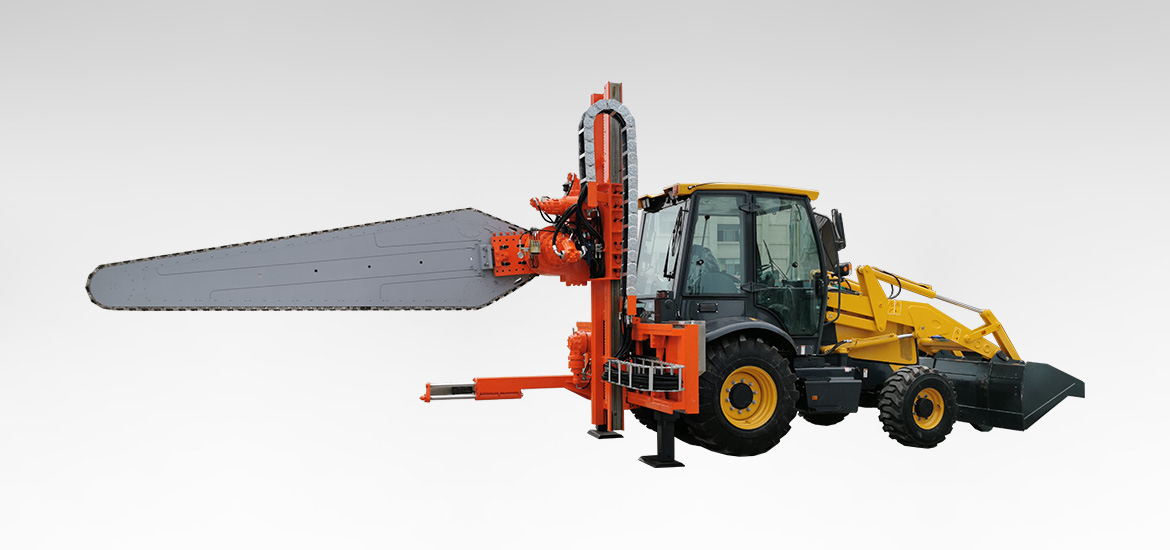 Колесная цепная пила состоит из двух частей: системы резки цепной руки и колесного погрузчика, которые в основном используются для разделения больших кусков мусора и резки полосы руды.