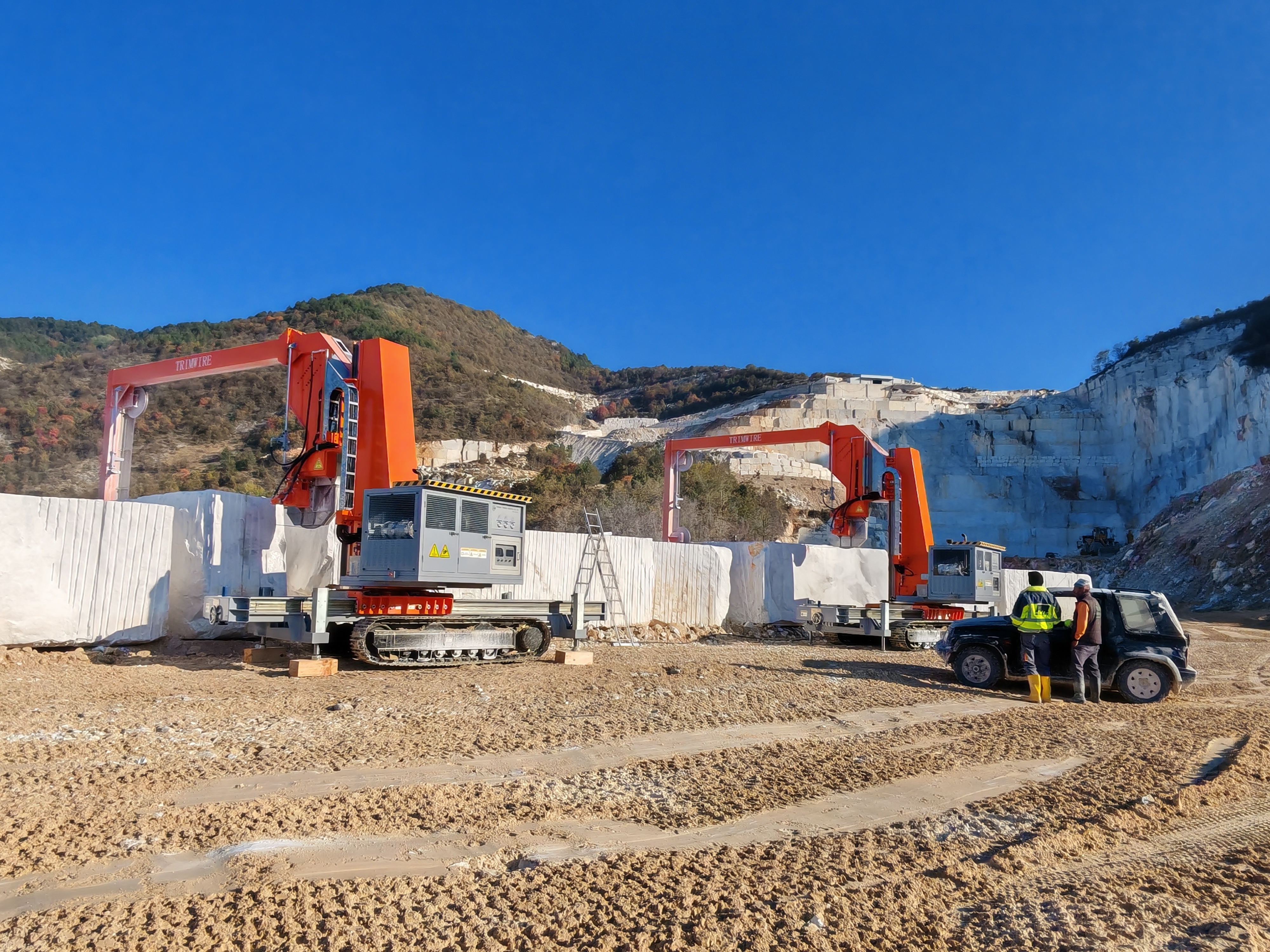 Paletli Mobil Tek Hatlı Tel TestereMakinesi, mermervegranitbloklarınınşekillendirilmesi, kenardüzeltmevekalınplakalarınkesimiiçinkullanılır.