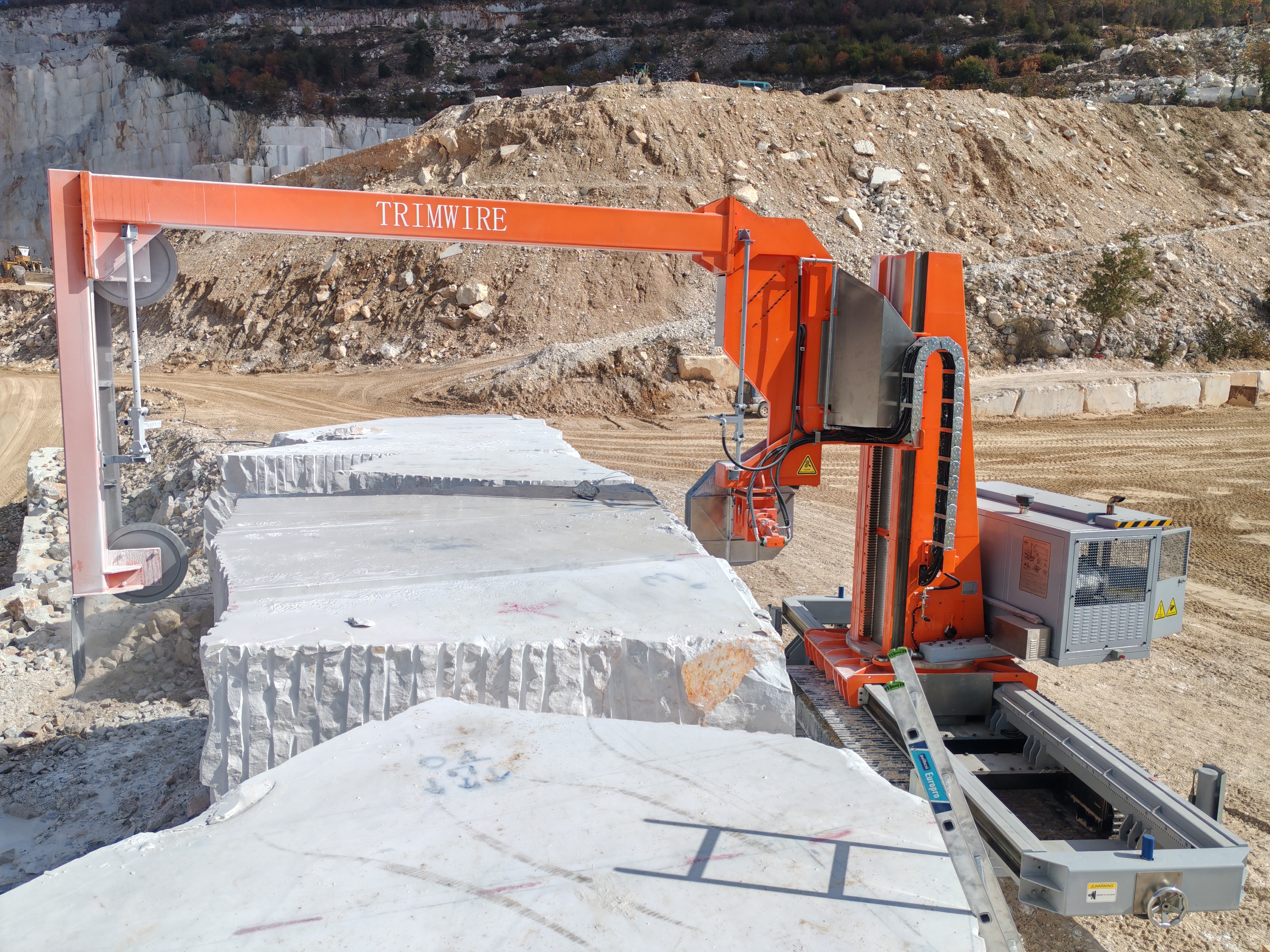 Paletli Mobil Tek Hatlı Tel TestereMakinesi, mermervegranitbloklarınınşekillendirilmesi, kenardüzeltmevekalınplakalarınkesimiiçinkullanılır.